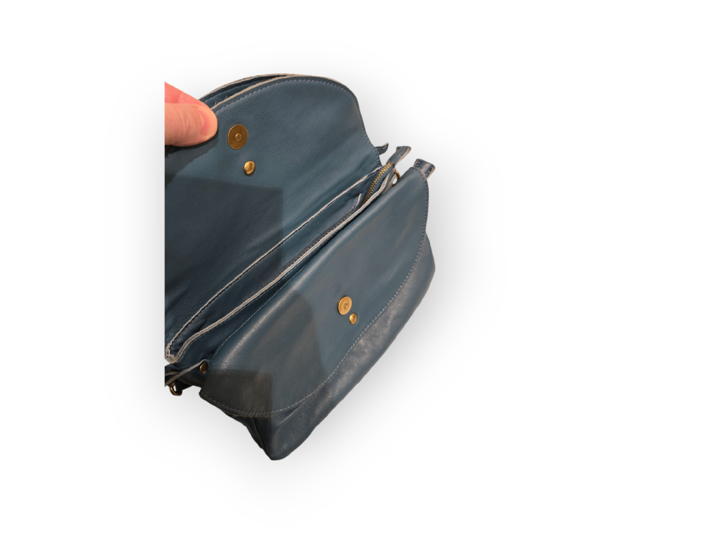 Každá kabelka se zapíná na zip a současně na magnet. Řemínek na rameno je součástí kabelky.