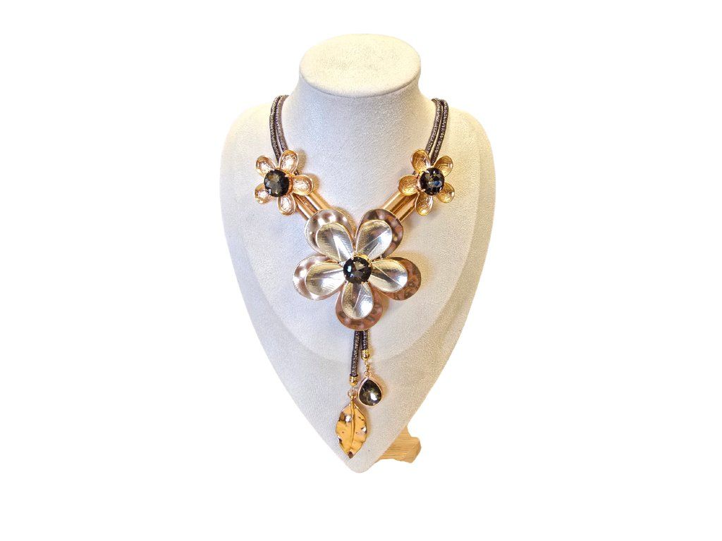 Materiál: bižuterní kov, textilní provázek, syntetické kameny