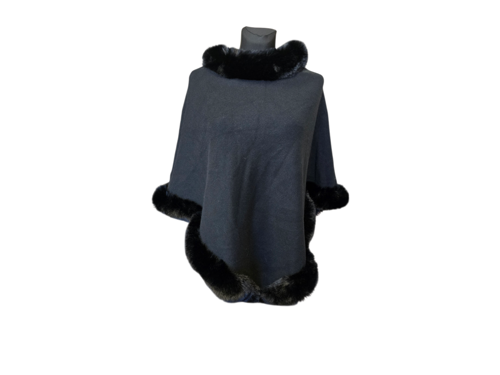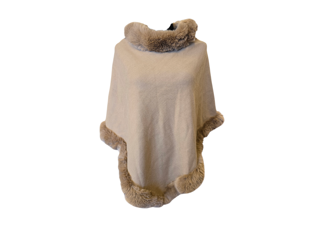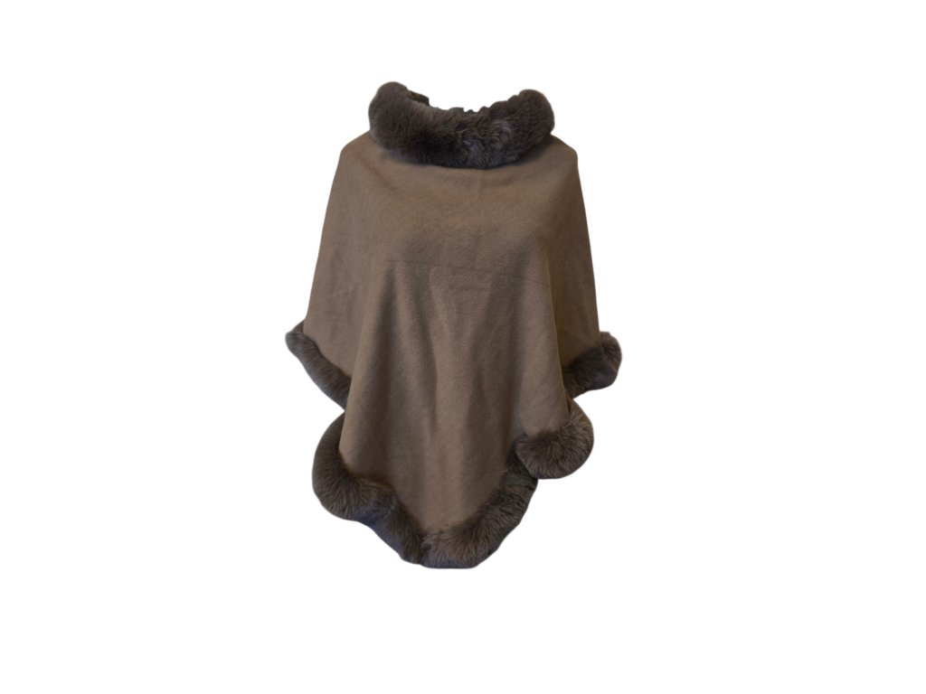 Dominantním prvkem tohoto modelu je bohatý a hebký kožíškový lem ve stejném barevném tónu. Kožíšek lemuje vysoký, útulný rolák, který spolehlivě ochrání váš krk před větrem, a také spodní okraje ponča, což mu dodává punc luxusu a ženskosti.
