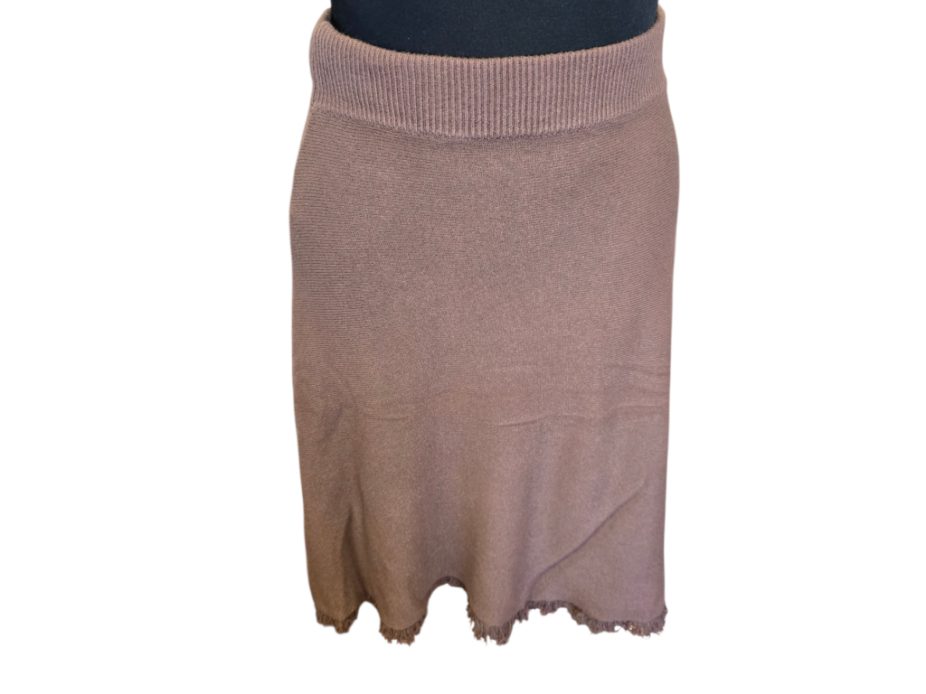 Originální detail: Jemné třepení na lemu ozvláštňuje minimalistický vzhled sukně.