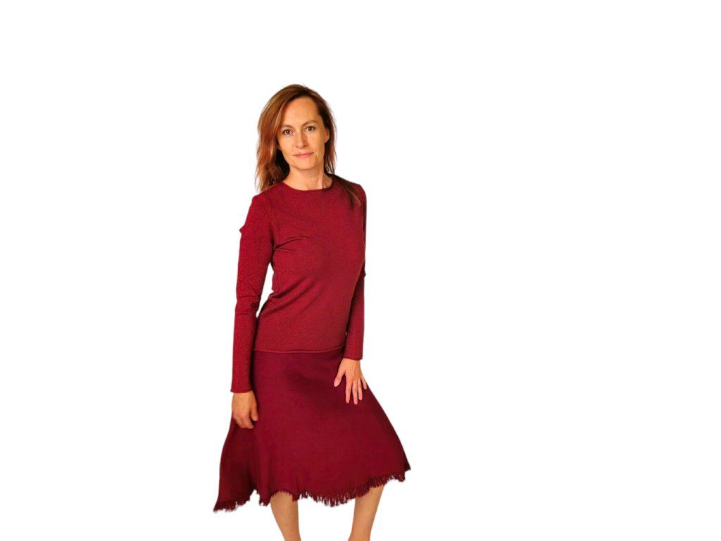 To, co z této sukně dělá opravdový unikát, je zakončení jemným třepením. Tento drobný detail vnáší do outfitu nádech hravosti a ležérnosti, aniž by sukně ztratila na své elegantní povaze. Třásně při chůzi lehce tančí a dodávají modelu dynamiku, kterou oceníte při každém pohybu.