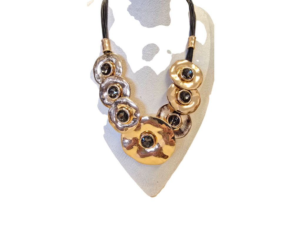 Materiál: bižuterní kov, textilní provázek, syntetické kameny
